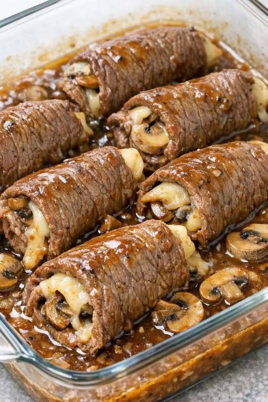 This Oven-Baked Mushroom Swiss Steak Rolls recipe is a simplified twist on a classic roulade, where the natural fats in the beef and the melted Swiss cheese help keep the meat moist from the inside as it cooks. Using thin-cut cube or round steak removes the need for long braising times, while tightly rolling the meat helps trap steam and gently tenderize it in under an hour. The rich gravy acts as a flavorful cooking base, keeping the beef from drying out while infusing it with savory mushroom notes. Oven-Baked 4-Ingredient Mushroom Swiss Steak Rolls Ingredients: Beef round or cube…
